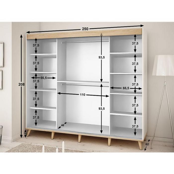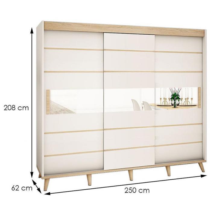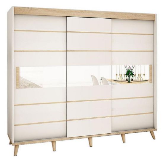Szafa z drzwiami przesuwnymi Skandi to doskonały wybór do garderoby, przedpokoju, salonu czy sypialni. Kolor frontów i korpusu sprawiają, że wpasuje się w większość aranżacji. Jej wnętrze jest pojemne i pomieści zarówno ubrania jak i inne akcesoria. Szafa jest 3-drzwiowa.