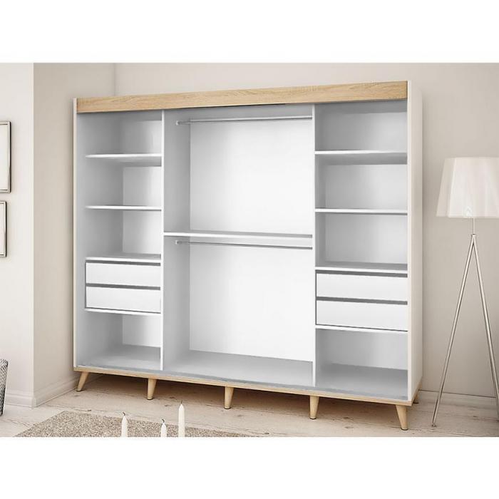 Wygląd szafy Skandi zachwyci każdego zwolennika eleganckiego, a zarazem ciekawego stylu. Szafa posiada wystarczającą ilość miejsca na ubrania oraz na inne przedmioty. Jest to niezbędny element wyposażenia w każdym domu, garderobie czy przedpokoju. Materiał wykonania to płyta wiórowa laminowana.