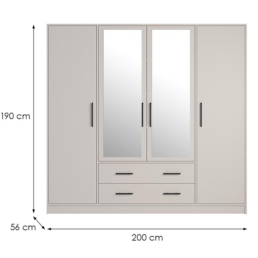 Szafa Smart Srl1 4dl Cashmere to mebel, który łączy elegancję z funkcjonalnością. Kilkudrzwiowa konstrukcja umożliwia wygodne uporządkowanie ubrań, dodatków i innych przedmiotów. Wbudowane lustro nie tylko ułatwia codzienne korzystanie, ale też optycznie powiększa przestrzeń wnętrza, dodając lekkości i nowoczesnego charakteru.