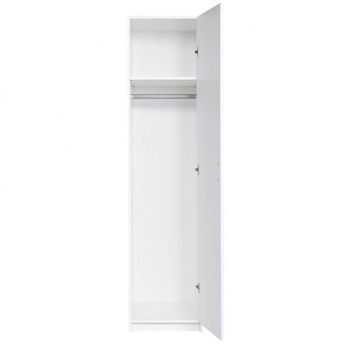 Szafa uchylna w kolorze białym z serii Snow to doskonała propozycja do pokoju dziennego, ale znajdzie swoje miejsce również w innym pomieszczeniu, jak na przykład - przedpokój czy garderobie, sypialni. Materiał wykonania to płyta laminowana. Szafa posiada półki, drążek na ubrania. Wygląd szafy sprawi, że wpasuje się w większość aranżacji. Szafa będzie świetnym miejscem do wieszania ubrań, na buty lub inne domowe tekstylia. Nowoczesny styl mebli wpadnie do gustu każdemu, kto poszukuje eleganckiego, klasycznego, a zarazem nowoczesnego umeblowania. Szafa przeznaczona do samodzielnego montażu. Dodatkowym atutem jest możliwość dokupienia nastawki do szafy.