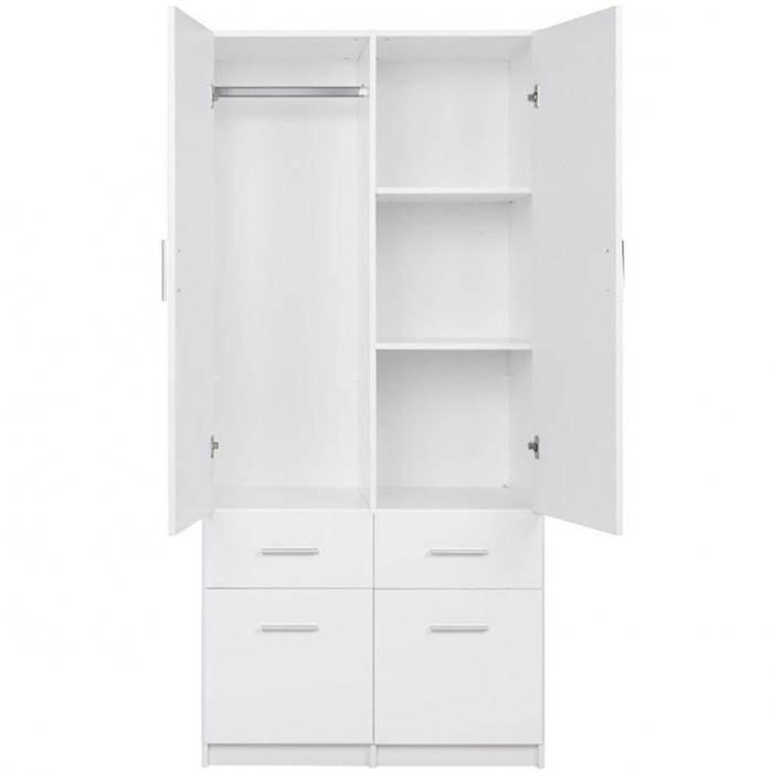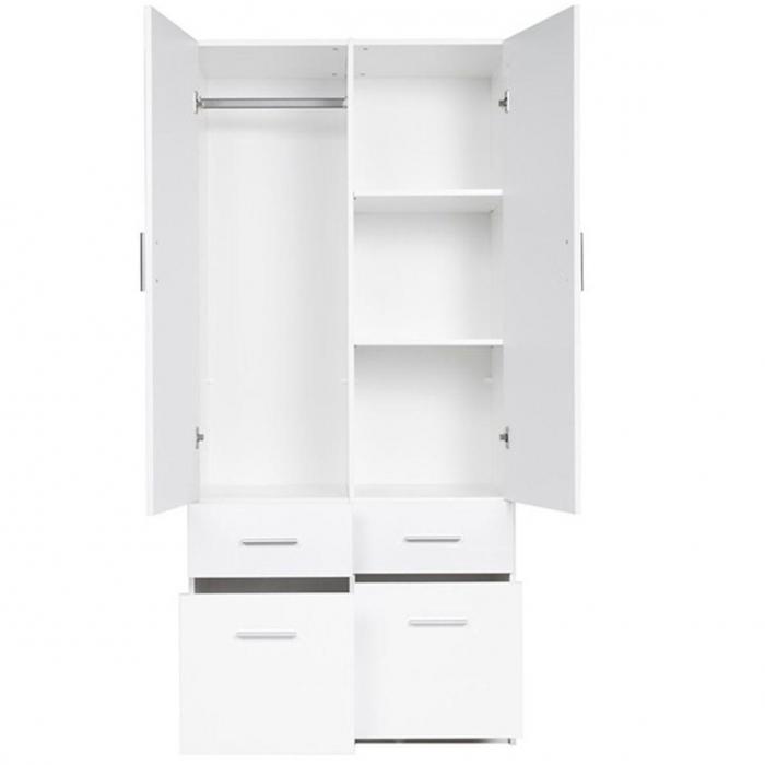 Szafa uchylna w kolorze białym z serii Snow to doskonała propozycja do pokoju dziennego, ale znajdzie swoje miejsce również w innym pomieszczeniu, jak na przykład - przedpokój czy garderobie, sypialni. Materiał wykonania to płyta laminowana. Szafa posiada półki, drążek na ubrania oraz szuflady. Wygląd szafy sprawi, że wpasuje się w większość aranżacji. Szafa będzie świetnym miejscem do wieszania ubrań, na buty lub inne domowe tekstylia. Nowoczesny styl mebli wpadnie do gustu każdemu, kto poszukuje eleganckiego, klasycznego, a zarazem nowoczesnego umeblowania. Szafa przeznaczona do samodzielnego montażu.