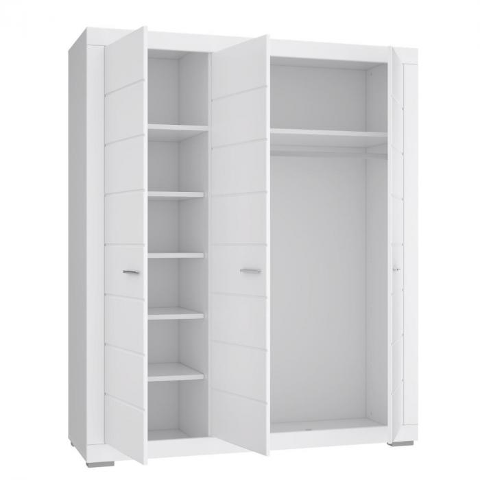 Szafa uchylna w kolorze białym z serii Snow to doskonała propozycja do pokoju dziennego, ale znajdzie swoje miejsce również w innym pomieszczeniu, jak na przykład - przedpokój czy garderobie, sypialni. Materiał wykonania to płyta laminowana 15 mm. Szafa posiada półki, metalowy drążek na ubrania w kolorze chrom. Wygląd szafy sprawi, że wpasuje się w większość aranżacji. Szafa będzie świetnym miejscem do wieszania ubrań, na buty lub inne domowe tekstylia. Nowoczesny styl mebli wpadnie do gustu każdemu, kto poszukuje eleganckiego, klasycznego, a zarazem nowoczesnego umeblowania. Szafa przeznaczona do samodzielnego montażu.