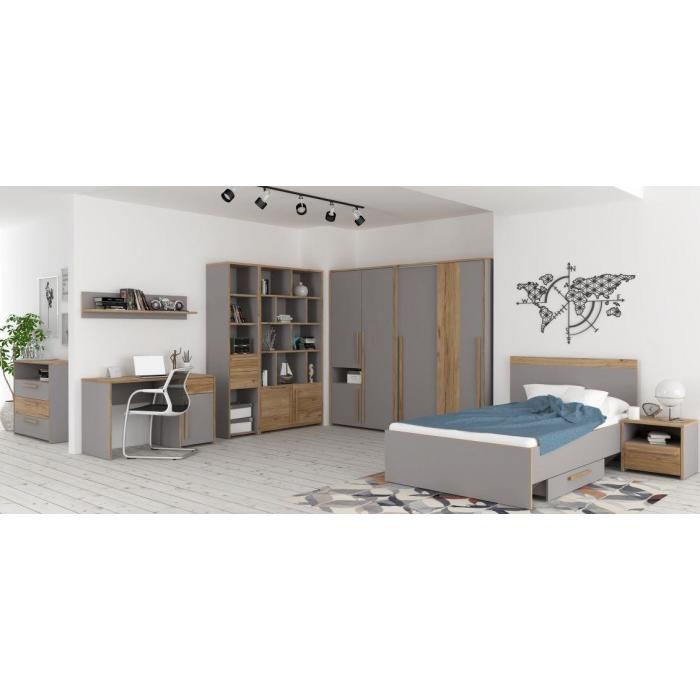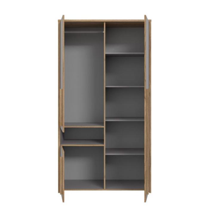 Szafa trzydrzwiowa Soklot to doskonała propozycja do pokoju młodzieżowego. Korpus oraz front systemu wykonany został w kolorze szarym w połączeniu z dekorem dąb catania. Meble Soklot charakteryzują nowoczesnym i eleganckim designem. Wniosą do każdego wnętrza ciekawy wygląd, który zachwyci każdego.