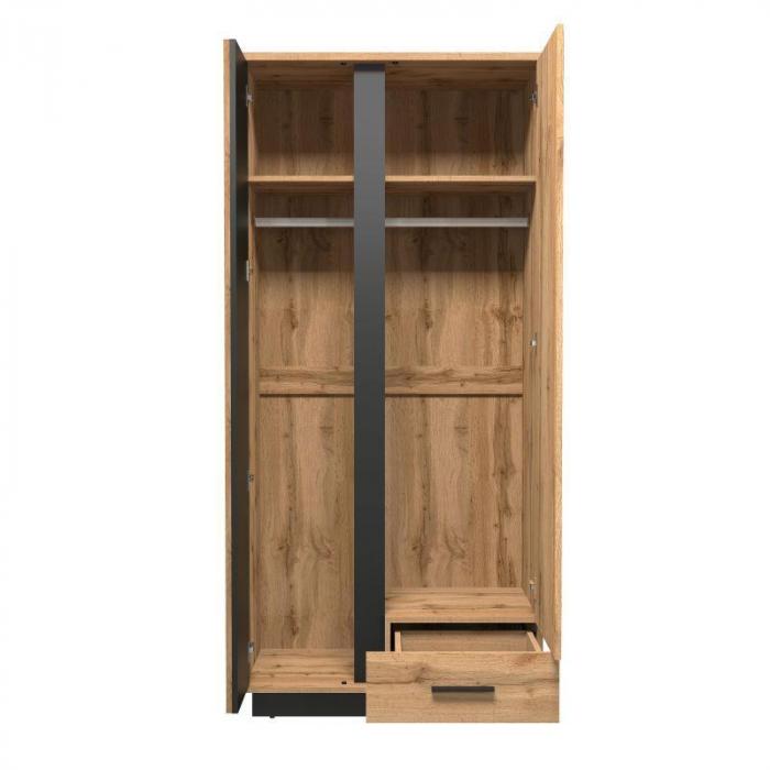 Szafa z drzwiami uchylnymi Sole LA1 to doskonały wybór do garderoby, przedpokoju, salonu czy sypialni. Kolor frontów i korpusu sprawiają, że wpasuje się w większość aranżacji. Jej wnętrze jest pojemne i pomieści zarówno ubrania jak i inne akcesoria. Szafa jest 2-drzwiowa oraz posiada jedną szufladę.