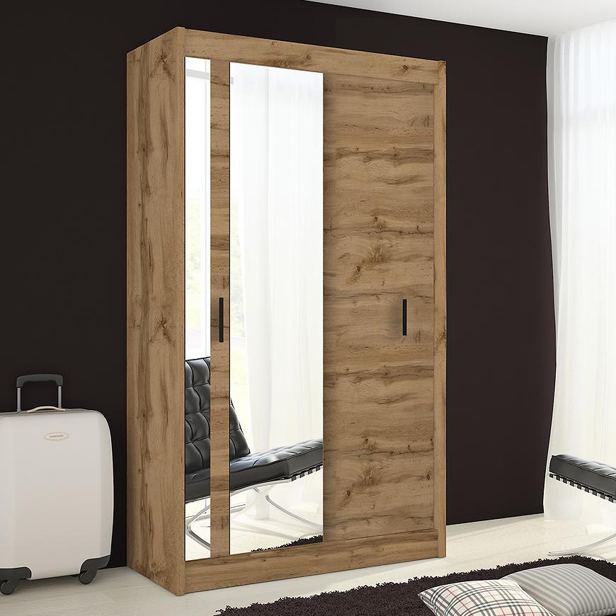 Wyposażona w duże lustro na jednym z drzwi, szafa Solo 120 ułatwia codzienne przygotowania, jednocześnie optycznie powiększając przestrzeń pokoju. Matowe wykończenie dodaje elegancji, a wykonanie z wysokiej jakości płyty wiórowej laminowanej zapewnia trwałość i odporność na uszkodzenia.