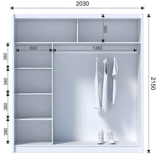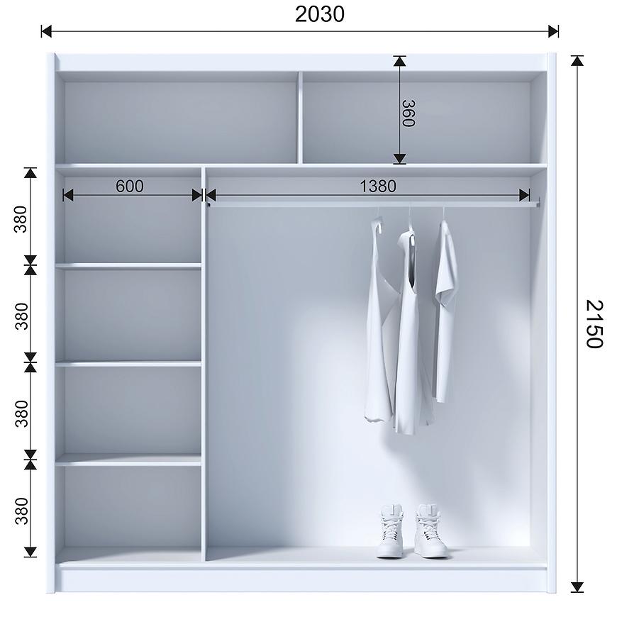 Wnętrze szafy zaprojektowano z myślą o maksymalnej funkcjonalności – znajdziemy tam półki oraz drążek na ubrania, co pozwala na wygodne rozmieszczenie zarówno odzieży wiszącej, jak i składanej. Kolekcja SOLO to propozycja dla osób ceniących nowoczesny styl połączony z praktycznymi rozwiązaniami. Szafa Solo 203 to idealny wybór dla tych, którzy poszukują pojemnego, a zarazem stylowego mebla do swojej sypialni lub przedpokoju.