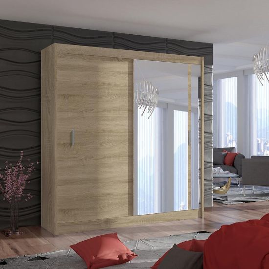 Wyposażona w duże lustro na jednym z drzwi, szafa Solo 203 ułatwia codzienne przygotowania, jednocześnie optycznie powiększając przestrzeń pokoju. Matowe wykończenie dodaje elegancji, a wykonanie z wysokiej jakości płyty wiórowej laminowanej zapewnia trwałość i odporność na uszkodzenia.