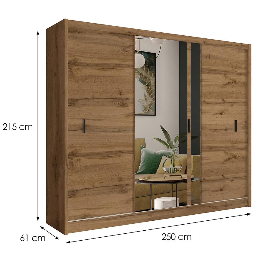 Szafa Solo 250 w kolorze dąb wotan to elegancki i funkcjonalny mebel, który doskonale wpasuje się w nowoczesne wnętrza. Jej imponujące wymiary (szerokość 250 cm, wysokość 215 cm, głębokość 61 cm) zapewniają dużą przestrzeń do przechowywania ubrań i innych przedmiotów. Dzięki trzydrzwiowej konstrukcji z drzwiami przesuwnymi, szafa nie tylko prezentuje się stylowo, ale także jest praktyczna – idealna do pomieszczeń, gdzie oszczędność miejsca jest priorytetem.