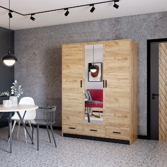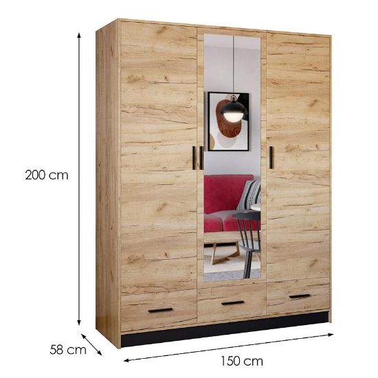 Szafa Sophie 150 w kolorze craft/czarny to elegancki i funkcjonalny mebel, który idealnie sprawdzi się w nowoczesnych wnętrzach. Dzięki przemyślanemu designowi łączy w sobie stylowy wygląd z wysoką praktycznością, spełniając oczekiwania nawet najbardziej wymagających użytkowników. Szafa została wyposażona w trzy klasyczne drzwi oraz trzy pojemne szuflady, co czyni ją idealnym rozwiązaniem do przechowywania ubrań, akcesoriów i innych przedmiotów.
