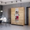 Konstrukcja szafy wykonana jest z wysokiej jakości płyty wiórowej laminowanej, która zapewnia trwałość i odporność na codzienne użytkowanie. Solidne wykończenie gwarantuje długowieczność mebla, a jego nowoczesny styl sprawia, że będzie on doskonałym uzupełnieniem każdego wnętrza.