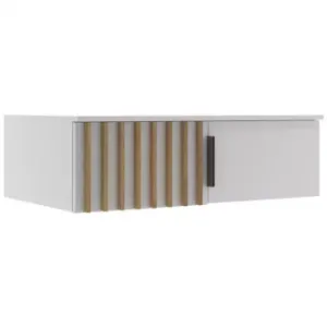 Wyjątkowy charakter tego modelu nadaje połączenie białych frontów z elementami w kolorze craft złoty. Biały kolor frontów i korpusu w matowym wykończeniu podkreśla nowoczesną stylistykę szafy, nadając jej lekkości i subtelności, podczas gdy lamele stanowią ciekawy, kontrastujący akcent. Taki dobór kolorów sprawia, że szafa idealnie wpasuje się w różnorodne aranżacje – od minimalistycznych, przez skandynawskie, aż po bardziej klasyczne wnętrza z nutą elegancji.