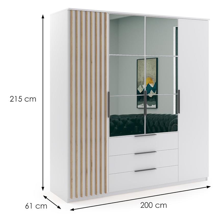 Szafa Sorento biała/lamel craft złoty to nowoczesny mebel, który łączy w sobie funkcjonalność z eleganckim, współczesnym designem. Dzięki swoim wymiarom stanowi idealne rozwiązanie do pomieszczeń, gdzie liczy się zarówno przestrzeń do przechowywania, jak i estetyka. Czterodrzwiowa konstrukcja zapewnia wygodny dostęp do wnętrza szafy, co ułatwia organizację odzieży i dodatków, a także wprowadza porządek do codziennego życia.