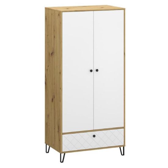 Wygląd szafy Sorrento zachwyci każdego zwolennika nowoczesnego, a zarazem uniwersalnego stylu. Szafa posiada wystarczającą ilość miejsca na ubrania oraz na inne przedmioty. Jest to niezbędny element wyposażenia w każdym domu, garderobie czy przedpokoju. Materiał wykonania to płyta wiórowa laminowana.