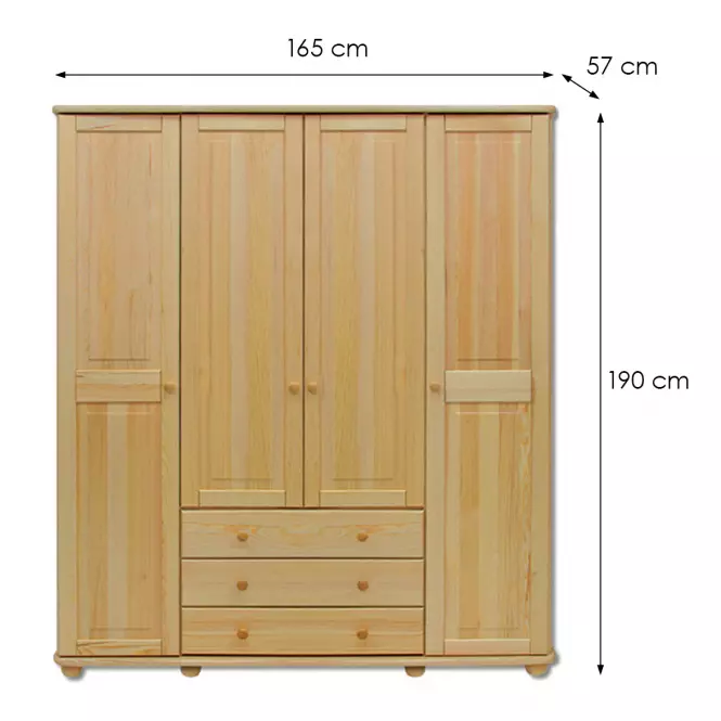 Wykonana w całości z wytrzymałego drewna sosnowego, zarówno fronty, jak i korpus szafy zachowują naturalny, jasny wygląd z matowym wykończeniem. Takie rozwiązanie nie tylko podkreśla wyjątkowy charakter naturalnego materiału, ale również dodaje wnętrzu przytulności i ciepła. Szafa jest solidnie zbudowana, co gwarantuje jej trwałość i wytrzymałość na lata, idealnie odpowiadając na potrzeby przechowywania w domowych wnętrzach.
