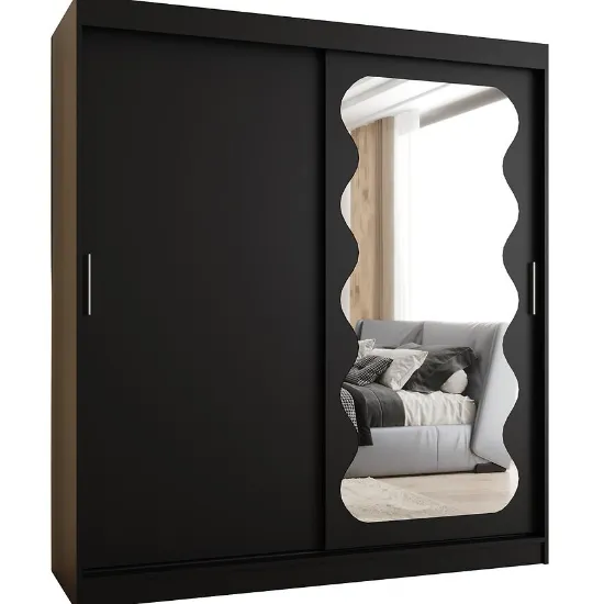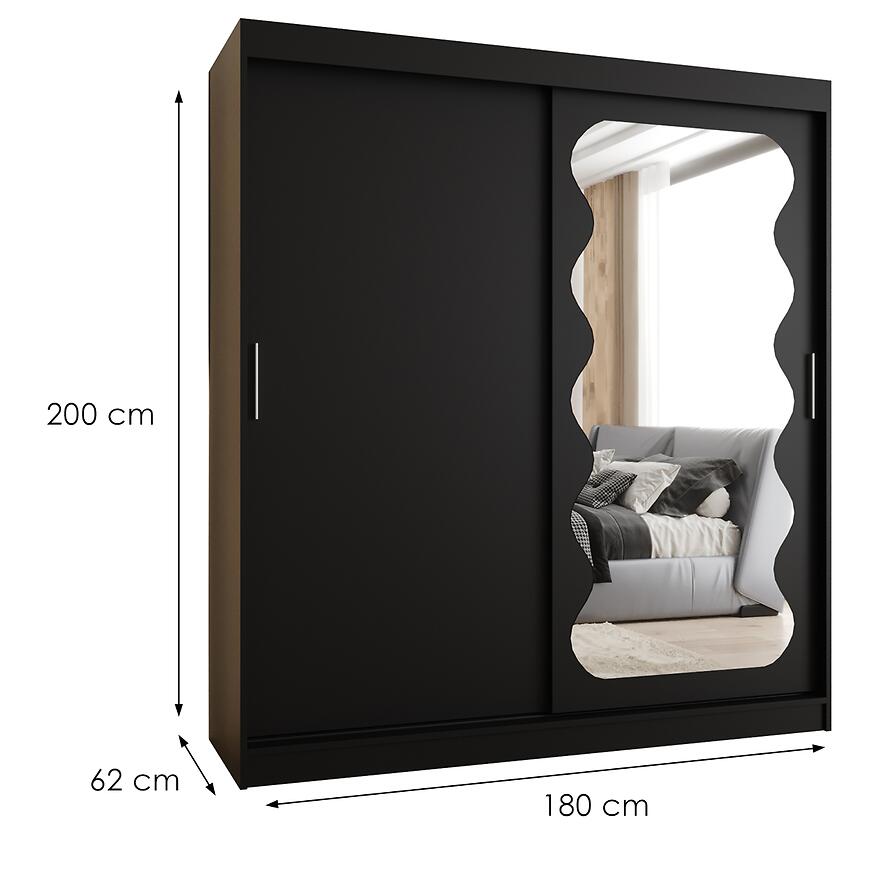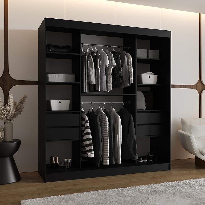 Szafa Spoti 180 czarny łączy elegancję i funkcjonalność, doskonale sprawdzając się w nowoczesnych sypialniach i garderobach.