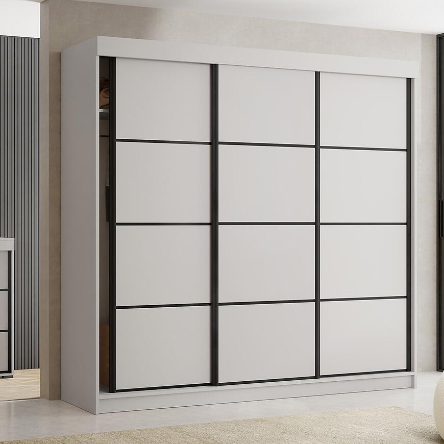 Szafa Tanger 200 waży 153 kg, co daje pewność stabilności, a brak opcji oświetlenia sprawia, że mebel jest prosty i elegancki, idealny do nowoczesnych i minimalistycznych wnętrz.