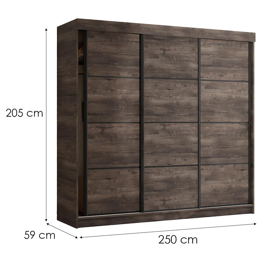 Szafa Tanger 250 cm Jesion Ciemny – pojemna szafa przesuwna do sypialni i garderoby
