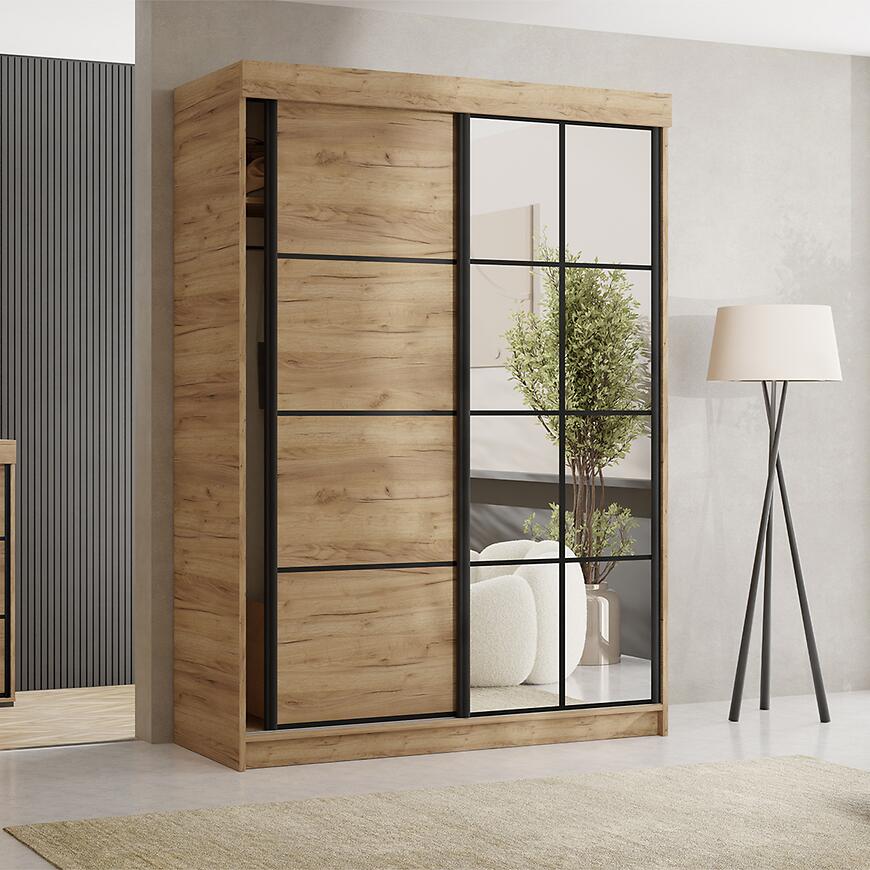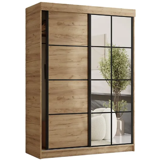 Szafa Tanger 138 Dąb Craft Złoty z lustrem – nowoczesna szafa przesuwna do sypialni i garderoby