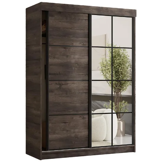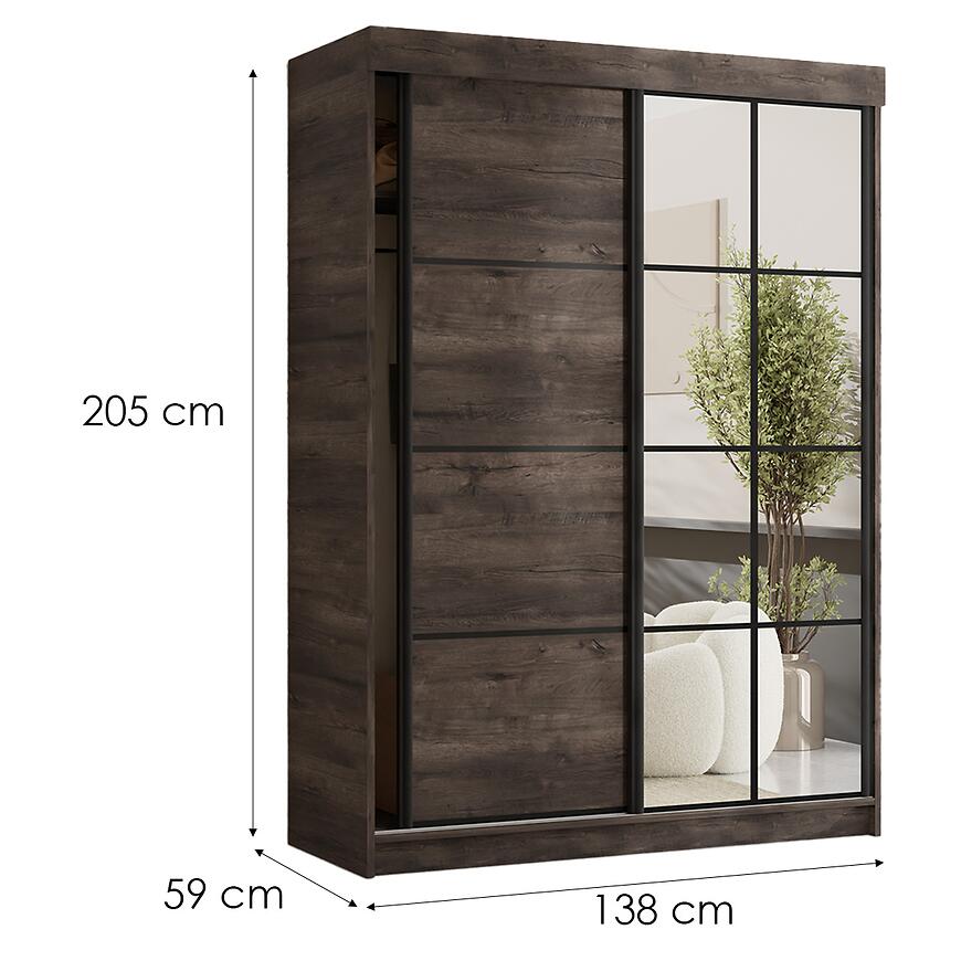 Szafa Tanger 138 z lustrem – nowoczesna szafa przesuwna Jesion Ciemny do sypialni i garderoby