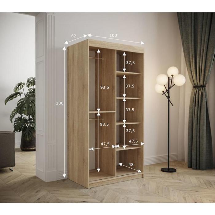 Szafa z drzwiami przesuwnymi Tapi to doskonały wybór do garderoby, przedpokoju, salonu czy sypialni. Kolor frontów i korpusu sprawiają, że wpasuje się w większość aranżacji. Jej wnętrze jest pojemne i pomieści zarówno ubrania jak i inne akcesoria. Szafa jest 2-drzwiowa.