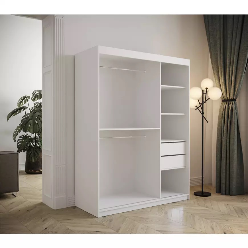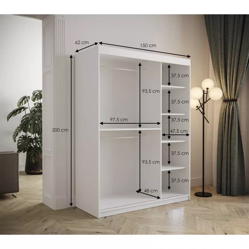 Szafa z drzwiami przesuwnymi Tapi to doskonały wybór do garderoby, przedpokoju, salonu czy sypialni. Kolor frontów i korpusu sprawiają, że wpasuje się w większość aranżacji. Jej wnętrze jest pojemne i pomieści zarówno ubrania jak i inne akcesoria. Szafa jest 2-drzwiowa.