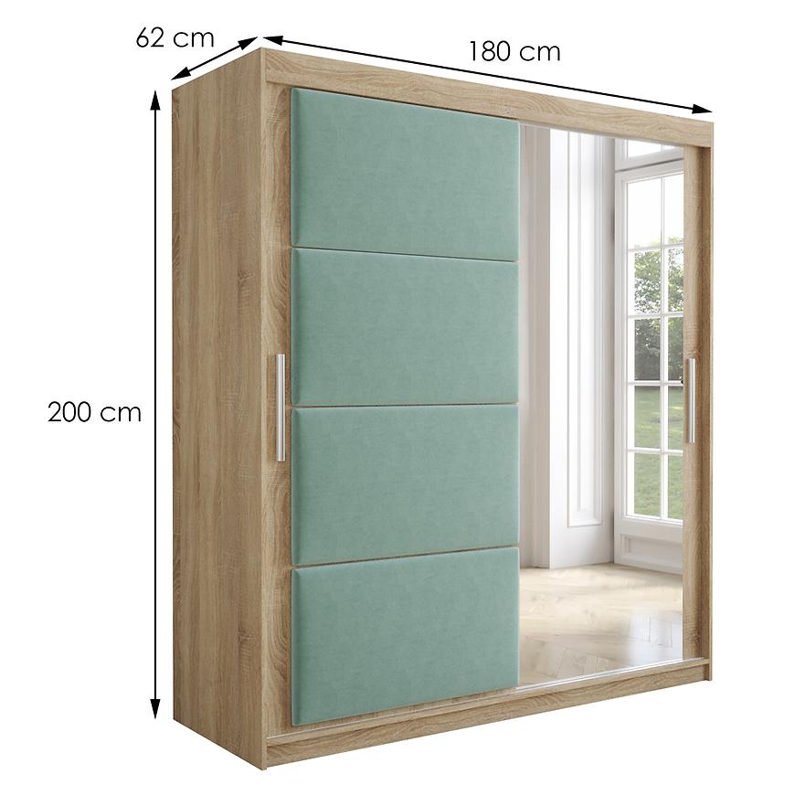 Wygląd szafy Tapi zachwyci każdego zwolennika klasycznego, a zarazem ciekawego stylu. Szafa posiada wystarczającą ilość miejsca na ubrania oraz na inne przedmioty. Jest to niezbędny element wyposażenia w każdym domu, garderobie czy przedpokoju. Materiał wykonania to płyta wiórowa laminowana.