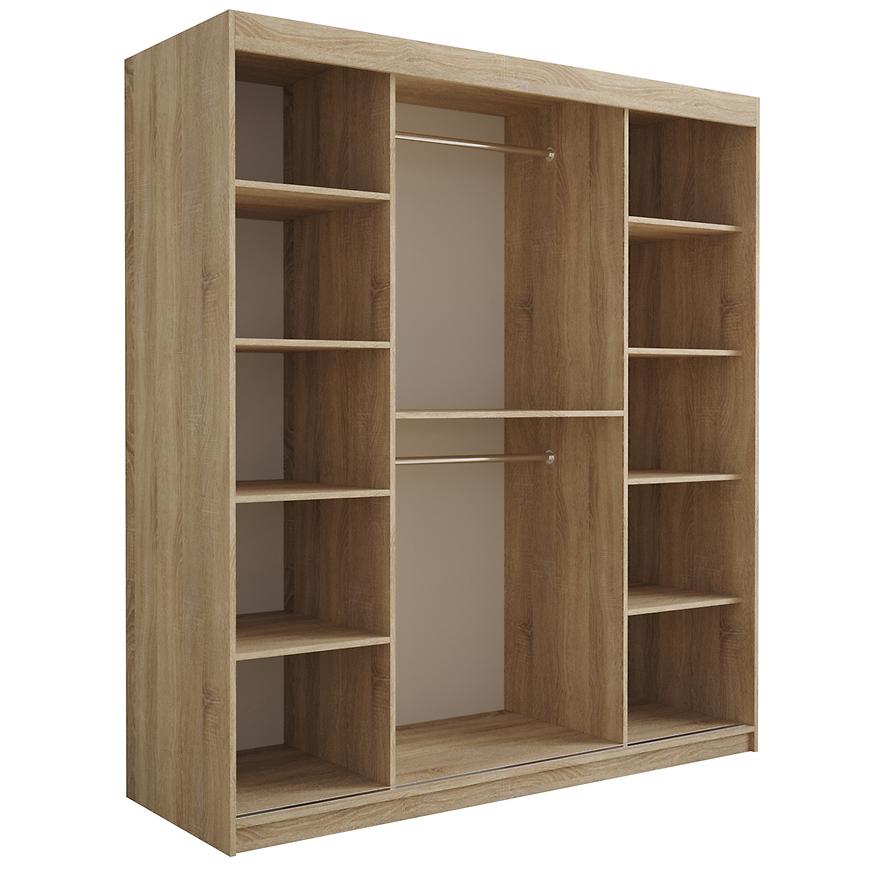 Szafa z drzwiami przesuwnymi Tapi to doskonały wybór do garderoby, przedpokoju, salonu czy sypialni. Kolor frontów i korpusu sprawiają, że wpasuje się w większość aranżacji. Jej wnętrze jest pojemne i pomieści zarówno ubrania jak i inne akcesoria. Szafa jest 2-drzwiowa.
