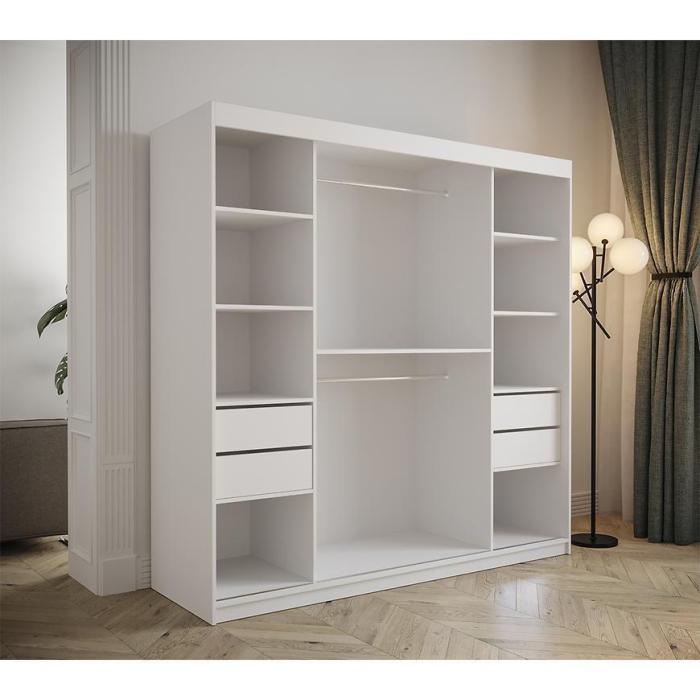 Szafa z drzwiami przesuwnymi Tapi to doskonały wybór do garderoby, przedpokoju, salonu czy sypialni. Kolor frontów i korpusu sprawiają, że wpasuje się w większość aranżacji. Jej wnętrze jest pojemne i pomieści zarówno ubrania jak i inne akcesoria. Szafa jest 2-drzwiowa.