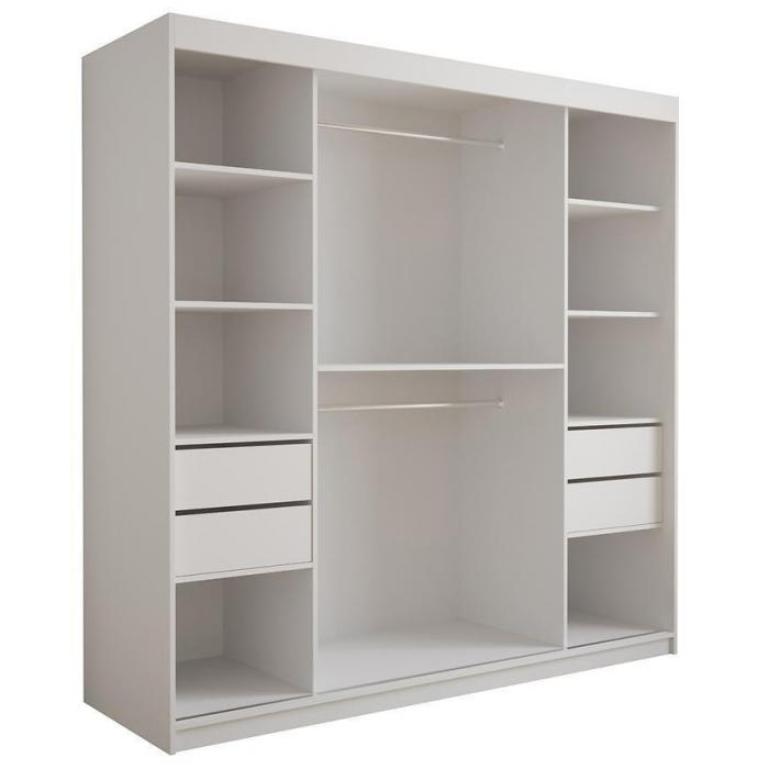 Szafa z drzwiami przesuwnymi Tapi to doskonały wybór do garderoby, przedpokoju, salonu czy sypialni. Kolor frontów i korpusu sprawiają, że wpasuje się w większość aranżacji. Jej wnętrze jest pojemne i pomieści zarówno ubrania jak i inne akcesoria. Szafa jest 2-drzwiowa.