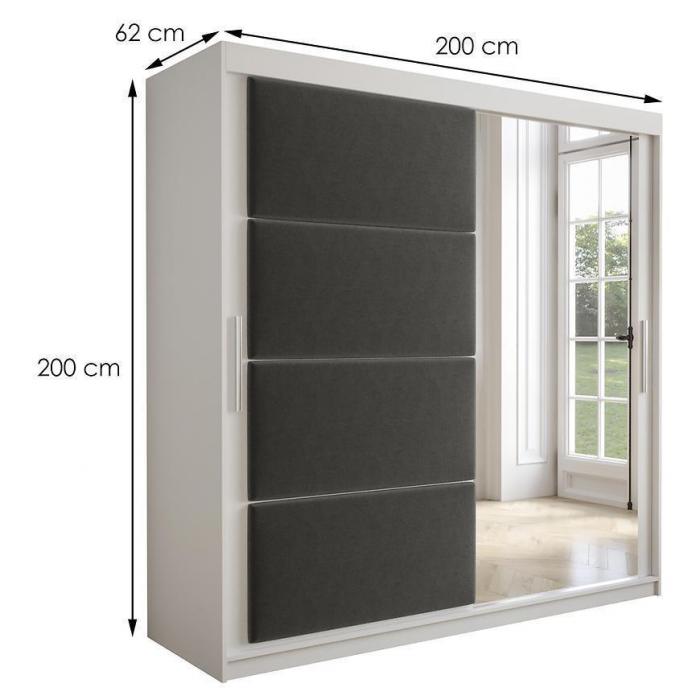Szafa z drzwiami przesuwnymi Tapi to doskonały wybór do garderoby, przedpokoju, salonu czy sypialni. Kolor frontów i korpusu sprawiają, że wpasuje się w większość aranżacji. Jej wnętrze jest pojemne i pomieści zarówno ubrania jak i inne akcesoria. Szafa jest 2-drzwiowa.