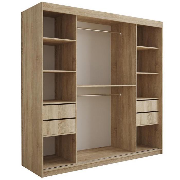 Wygląd szafy Tapi zachwyci każdego zwolennika klasycznego, a zarazem ciekawego stylu. Szafa posiada wystarczającą ilość miejsca na ubrania oraz na inne przedmioty. Jest to niezbędny element wyposażenia w każdym domu, garderobie czy przedpokoju. Materiał wykonania to płyta wiórowa laminowana.