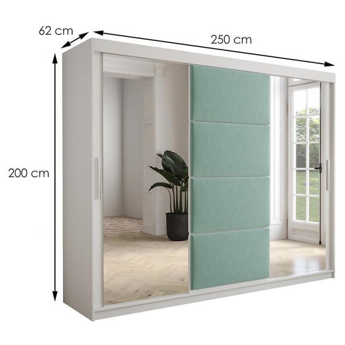 Szafa z drzwiami przesuwnymi Tapi to doskonały wybór do garderoby, przedpokoju, salonu czy sypialni. Kolor frontów i korpusu sprawiają, że wpasuje się w większość aranżacji. Jej wnętrze jest pojemne i pomieści zarówno ubrania jak i inne akcesoria. Szafa jest 3-drzwiowa.