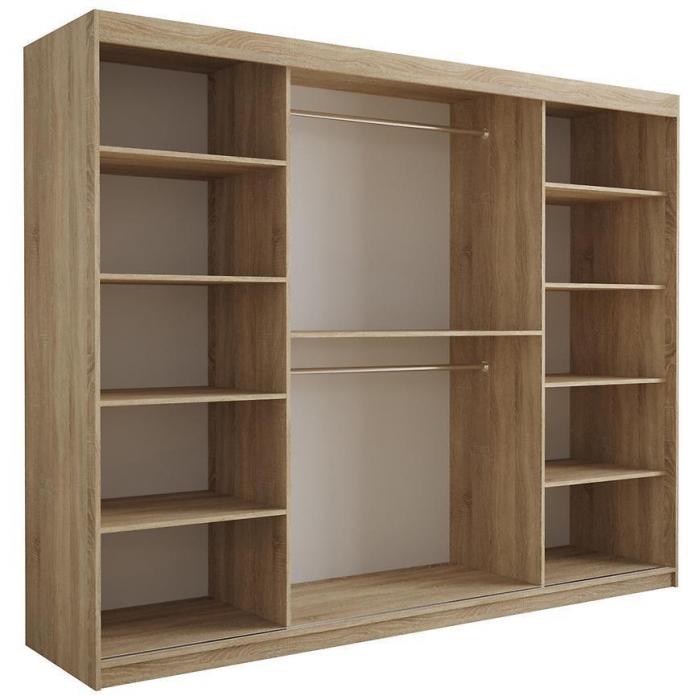 Szafa z drzwiami przesuwnymi Tapi to doskonały wybór do garderoby, przedpokoju, salonu czy sypialni. Kolor frontów i korpusu sprawiają, że wpasuje się w większość aranżacji. Jej wnętrze jest pojemne i pomieści zarówno ubrania jak i inne akcesoria. Szafa jest 3-drzwiowa.