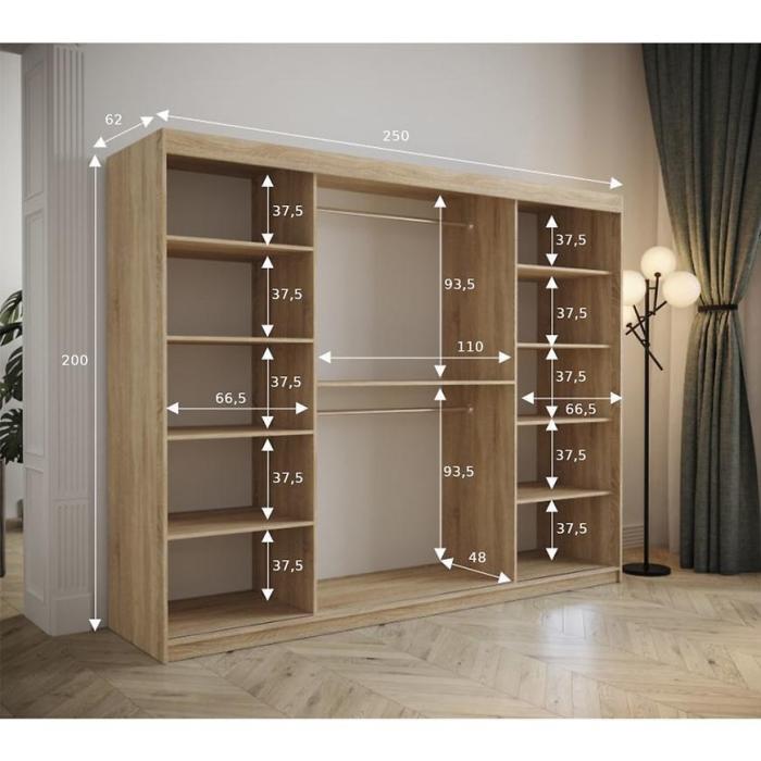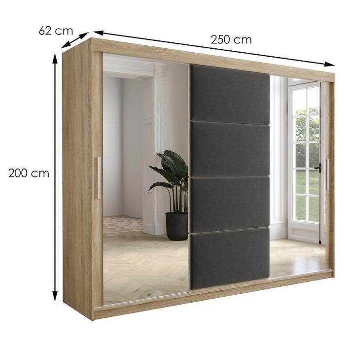 Szafa z drzwiami przesuwnymi Tapi to doskonały wybór do garderoby, przedpokoju, salonu czy sypialni. Kolor frontów i korpusu sprawiają, że wpasuje się w większość aranżacji. Jej wnętrze jest pojemne i pomieści zarówno ubrania jak i inne akcesoria. Szafa jest 3-drzwiowa.