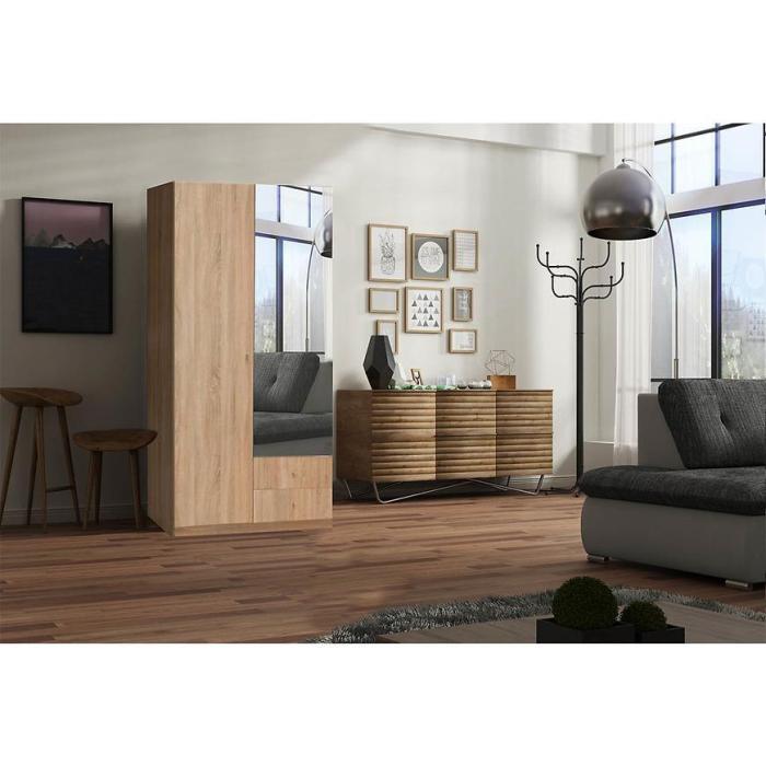 Szafa w kolorze dąb sonoma to propozycja do pokoju dziennego, ale znajdzie swoje miejsce również w innym pomieszczeniu, jak na przykład - przedpokój czy garderobie. Materiał wykonania to płyta laminowana. Szafa posiada półki, szuflady oraz drążek na ubrania. Mebel posiada lustro, które sprawi, że pomieszczenie stanie się optycznie większe. Nowoczesny styl mebli wpadnie do gustu każdemu, kto poszukuje eleganckiego, klasycznego, a zarazem nowoczesnego umeblowania. Idealnie wpasuje się w większość aranżacji. Przeznaczona do samodzielnego montażu. Mebel do samodzielnego montażu.