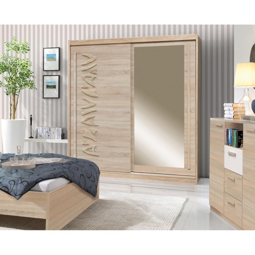 Szafa z przesuwanymi drzwiami w kolorze dąb sonoma z kolekcji Tokyo to doskonała propozycja do pokoju dziennego, ale znajdzie swoje miejsce również w innym pomieszczeniu, jak na przykład w przedpokoju czy garderobie, sypialni. Pojemna szafa Tokyo posiada lustro, które sprawi, że pomieszczenie stanie się optycznie większe. Wygląd szafy sprawi, że wpasuje się w większość aranżacji. Szafa będzie świetnym miejscem do wieszania ubrań. Materiał wykonania to płyta MDF.