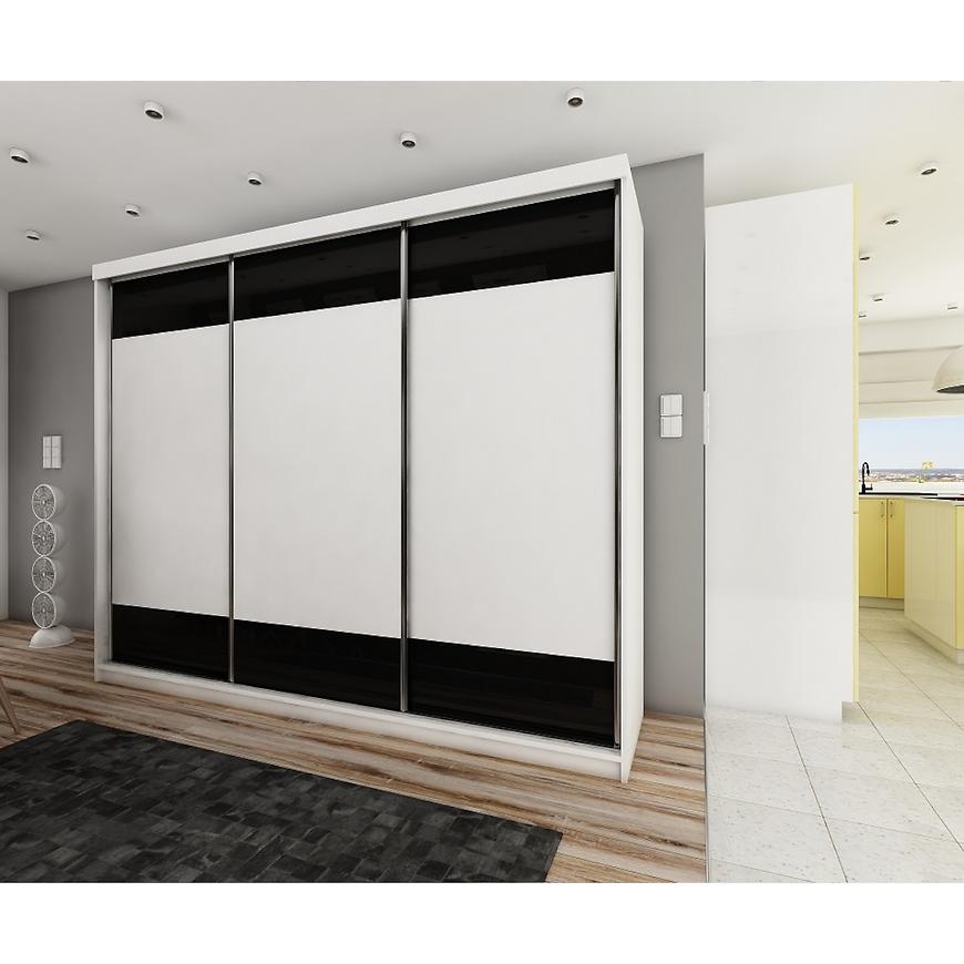 Trzydrzwiowa konstrukcja tej szafy z drzwiami przesuwnymi to praktyczne rozwiązanie, które jednocześnie nadaje meblowi elegancki i nowoczesny charakter.