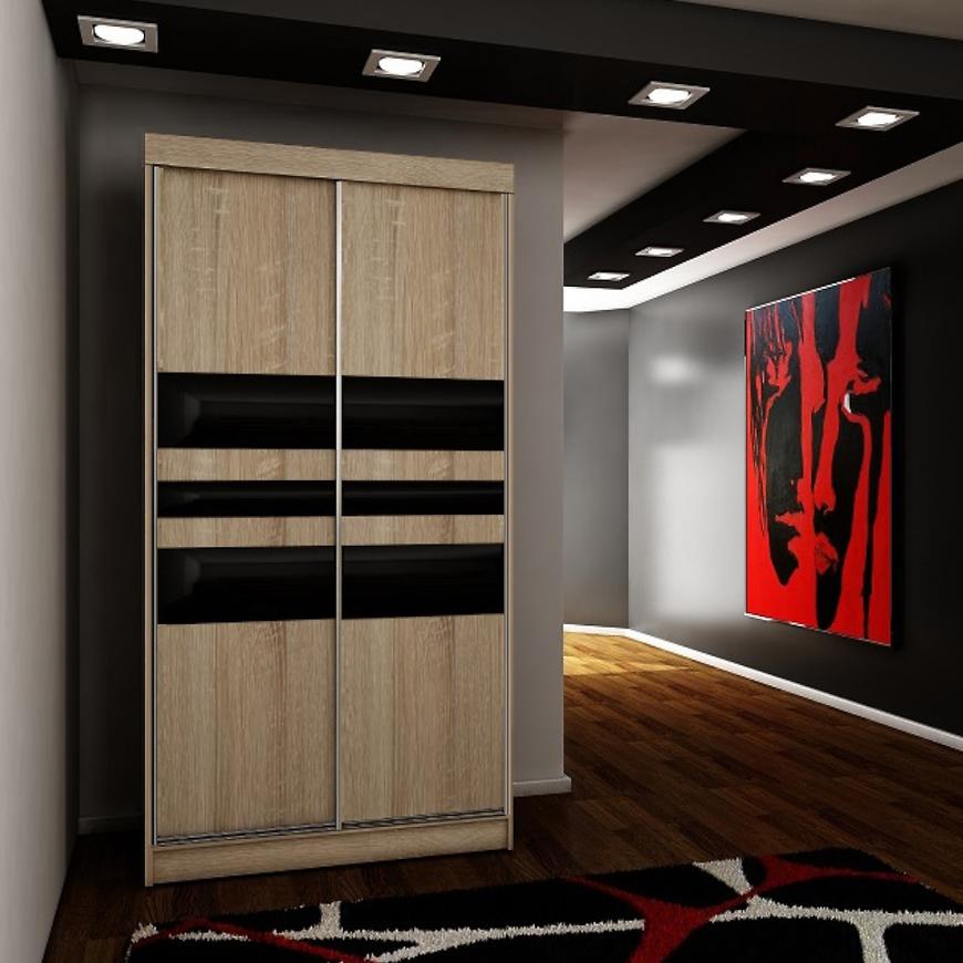 Szafa Top 17 100 charakteryzuje się drzwiami przesuwnymi, co nie tylko optymalizuje wykorzystanie przestrzeni, ale także nadaje wnętrzu nowoczesny charakter. Brak lustra sprawia, że szafa prezentuje się surowo i elegancko, doskonale wpisując się w styl nowoczesny. Fronty i korpus szafy utrzymane są w ciepłym odcieniu dębu sonoma, co nadaje meblowi naturalnego i przytulnego charakteru. Matowe wykończenie frontów i korpusu dodaje subtelności, eliminując zbędne odblaski światła i tworząc spójny, jednolity wygląd. Fronty szafy wykonane są z płyty wiórowej laminowanej, co gwarantuje nie tylko estetyczny wygląd, ale również trwałość konstrukcji. Płyta wiórowa laminowana jest solidnym materiałem, odpornym na uszkodzenia. Korpus szafy również opiera się na płycie wiórowej laminowanej, co zapewnia stabilność i trwałość mebla.