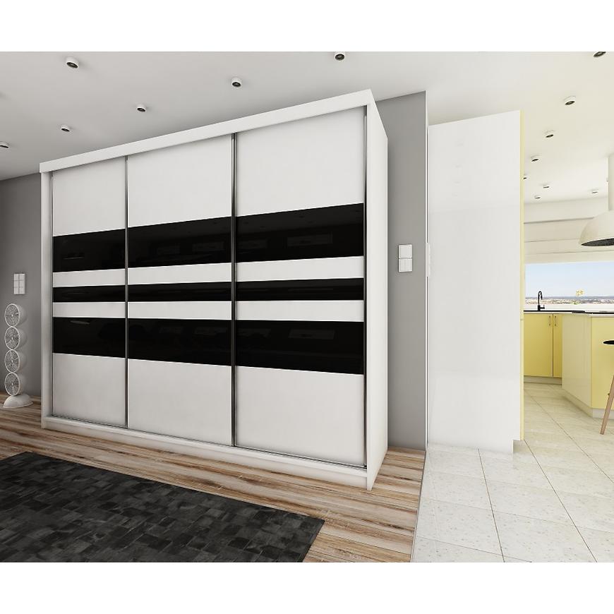 Trzydrzwiowa konstrukcja tej szafy z drzwiami przesuwnymi to praktyczne rozwiązanie, które jednocześnie nadaje meblowi elegancki i nowoczesny charakter.