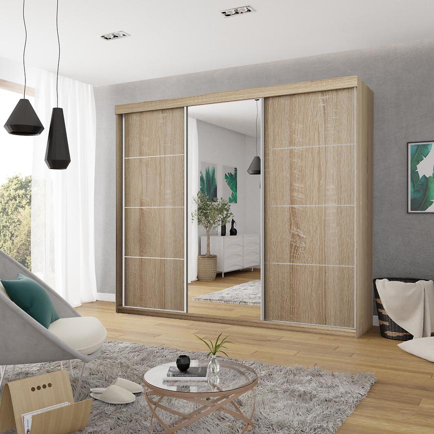 Szafa Top 23 Plus 250 w wyrafinowanym dębie sonoma to nie tylko praktyczne miejsce do przechowywania, ale również elegancki element wystroju wnętrza, który doskonale wpisuje się w nowoczesne trendy aranżacyjne. Z trzema drzwiami przesuwnymi, ta szafa zapewnia obszerną przestrzeń przechowywania, jednocześnie dodając charakteru i stylu pomieszczeniu.