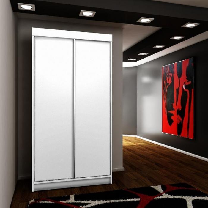 Szafa przesuwna Top to praktyczny mebel do sypialni czy przedpokoju. Kolor mebla wpasuje się w wiele aranżacji. Mebel w kolorze białym będzie pasował do wnętrz klasycznych jak również do wnętrz nowoczesnych. To szafa dwudrzwiowa, która posiada półki oraz drążek do wieszania ubrań, na którym powiesisz nawet długie ubrania. Pojemna szafa to dobre rozwiązanie, żeby schować to czego potrzebujesz. Szafa sprawdzi się z pewnością w danym pomieszczeniu. Istnieje możliwość dokupienia półek.