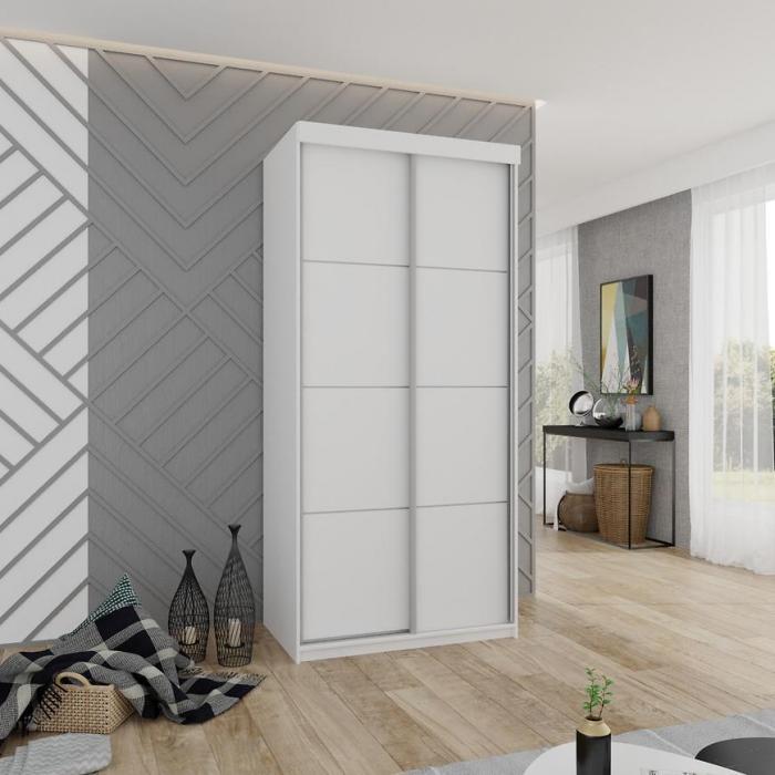 Szafa przesuwna Top to praktyczny mebel do sypialni czy przedpokoju. Kolor mebla wpasuje się w wiele aranżacji. Mebel w kolorze białym będzie pasował do wnętrz klasycznych jak również do wnętrz nowoczesnych. To szafa dwudrzwiowa, która posiada półki oraz drążek do wieszania ubrań, na którym powiesisz nawet długie ubrania. Pojemna szafa to dobre rozwiązanie, żeby schować to czego potrzebujesz. Szafa sprawdzi się z pewnością w danym pomieszczeniu.