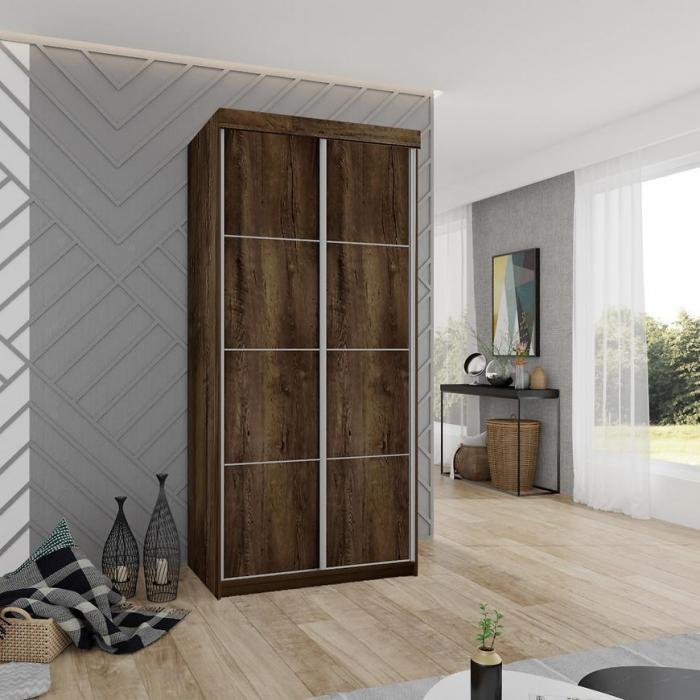 Szafa przesuwna Top to praktyczny mebel do sypialni czy przedpokoju. Kolor mebla wpasuje się w wiele aranżacji. Będzie pasowała do wnętrz klasycznych jak również do wnętrz nowoczesnych. To szafa dwudrzwiowa, która posiada półki oraz drążek do wieszania ubrań, na którym powiesisz nawet długie ubrania. Pojemna szafa to dobre rozwiązanie, żeby schować to czego potrzebujesz. Szafa sprawdzi się z pewnością w danym pomieszczeniu.