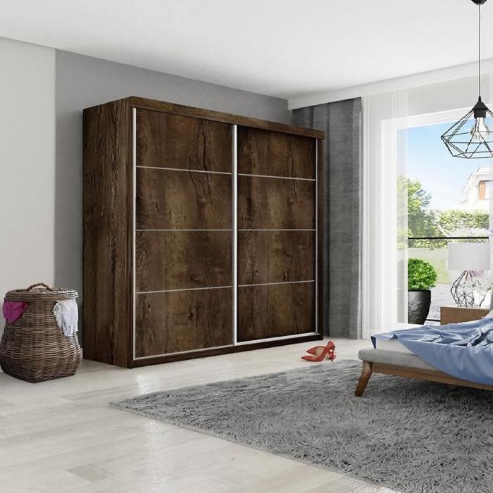 Szafa przesuwna Top to praktyczny mebel do sypialni czy przedpokoju, może posłużyć również jako garderoba. Kolor mebla wpasuje się w wiele aranżacji. Będzie pasowała do wnętrz klasycznych jak również do wnętrz nowoczesnych. To duża szafa, która posiada półki oraz drążek do wieszania ubrań, na którym powiesisz nawet długie ubrania. Pojemna szafa to dobre rozwiązanie, żeby schować to czego potrzebujesz. Szafa sprawdzi się z pewnością w danym pomieszczeniu.