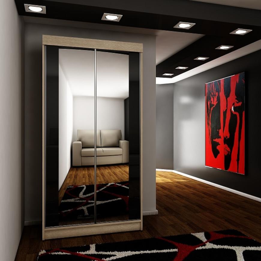 Szafa Top 30 100 charakteryzuje się drzwiami przesuwnymi, co nie tylko oszczędza przestrzeń, ale również nadaje meblowi nowoczesny wygląd. Fronty w odcieniu dębu sonoma są wykończone matową powłoką, co dodaje szafie elegancji. Dodatkowo, front szafy został wyposażony w lustro, które nie tylko pełni funkcję praktyczną, ale również optycznie powiększa przestrzeń.
