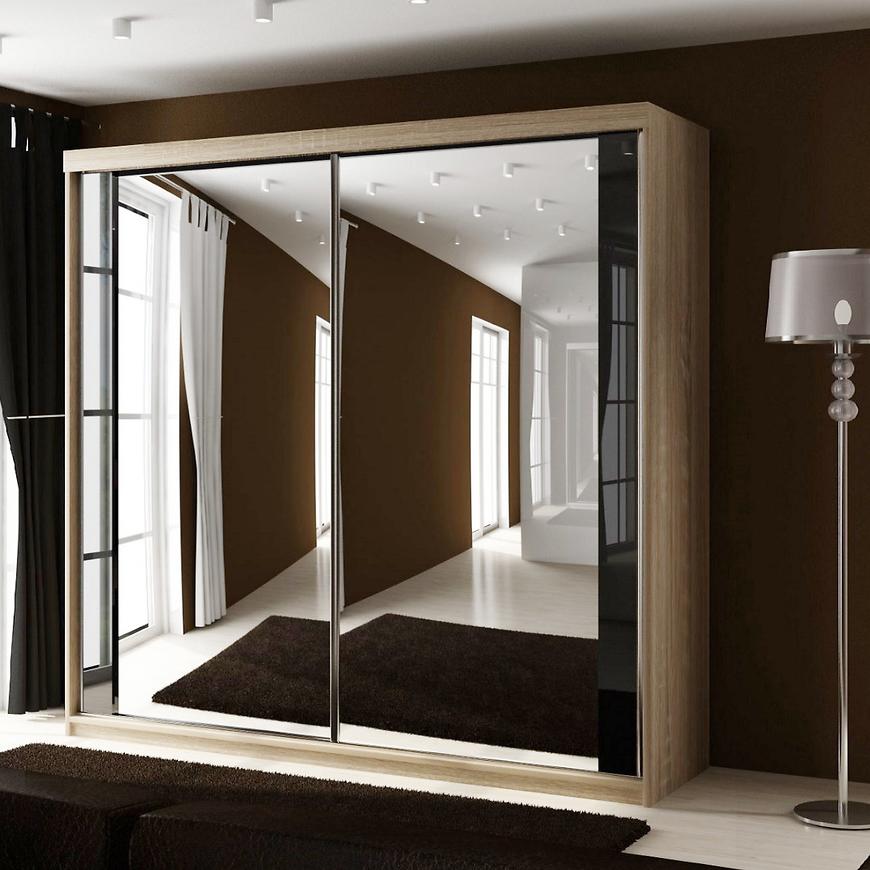 Drzwi dwudrzwiowe, wykonane z przesuwnym mechanizmem, nie tylko dodają praktyczności, ale również oszczędzają miejsce, umożliwiając łatwy dostęp do wnętrza szafy. Dodatkowo, fronty drzwi są ozdobione efektownym lustrem i dekorem, nadając pomieszczeniu nie tylko funkcjonalności, ale również optycznej przestrzeni.