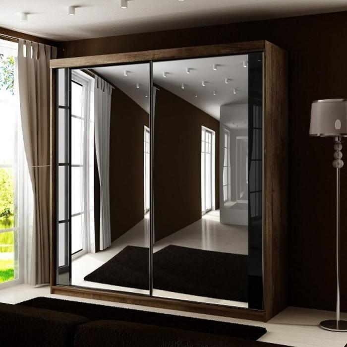 Szafa przesuwna Top z lustrem to praktyczny mebel do sypialni czy przedpokoju, może posłużyć również jako garderoba. Kolor mebla wpasuje się w wiele aranżacji. Będzie pasowała do wnętrz klasycznych jak również do wnętrz nowoczesnych. To duża szafa, która posiada półki oraz drążek do wieszania ubrań, na którym powiesisz nawet długie ubrania. Pojemna szafa to dobre rozwiązanie, żeby schować to czego potrzebujesz. Szafa sprawdzi się z pewnością w danym pomieszczeniu. Istnieje możliwość dokupienia półek.