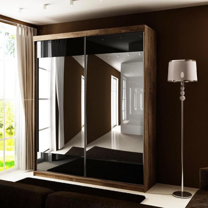 Szafa przesuwna Top z lustrem to praktyczny mebel do sypialni czy przedpokoju, może posłużyć również jako garderoba. Kolor mebla wpasuje się w wiele aranżacji. Będzie pasowała do wnętrz klasycznych jak również do wnętrz nowoczesnych. To duża szafa, która posiada półki oraz drążek do wieszania ubrań, na którym powiesisz nawet długie ubrania. Pojemna szafa to dobre rozwiązanie, żeby schować to czego potrzebujesz. Szafa sprawdzi się z pewnością w danym pomieszczeniu. Istnieje możliwość dokupienia półek.