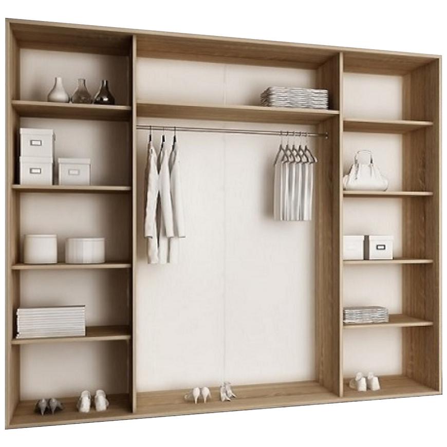 Szafa Top 3 250 w pięknym dębie sonoma to prawdziwy majstersztyk współczesnego designu, łączący funkcjonalność z elegancją. Z imponującą szerokością 250 cm i trzema drzwiami przesuwnymi, ta szafa nie tylko spełnia praktyczne potrzeby przechowywania, ale również staje się efektownym elementem wystroju wnętrza.