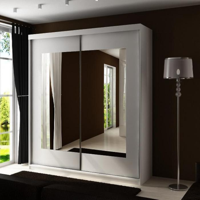 Szafa przesuwna Top z lustrem to praktyczny mebel do sypialni czy przedpokoju, może posłużyć również jako garderoba. Kolor mebla wpasuje się w wiele aranżacji. Mebel w kolorze białym będzie pasował do wnętrz klasycznych jak również do wnętrz nowoczesnych. To duża szafa, która posiada półki oraz drążek do wieszania ubrań, na którym powiesisz nawet długie ubrania. Pojemna szafa to dobre rozwiązanie, żeby schować to czego potrzebujesz. Szafa na ubrania z pewnością sprawdzi się w danym pomieszczeniu.